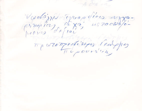 Πληροφορίες ΚατηγορίαΠοικίλα έγγραφαΌνομα φακέλου που ανήκει:1960-1969 ΔΙΑΦΟΡΑ 1965Α/Α εγγράφου:1Υπογράφειπ. Γεώργιος  ΠυρουνάκηςΠαραλήπτης:Πρόεδρος Κυβερνήσεως Γ....