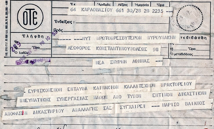Τηλ/μα στγχαρητήριον για απαλλαγιν από Δικαστήριον