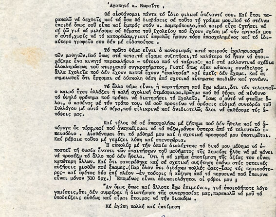Επιστολή με θέμα την λειτουργία του σχολείου και τον εκκλησιασμό των μαθητών