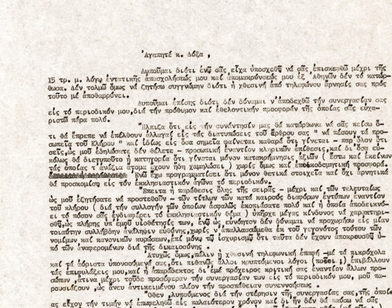 Επιστολή με θέμα μη αποδοχής του άρθρου του κ. Δόξα για το περιοδικόν