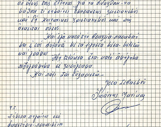 Πληροφορίες ΚατηγορίαΠοικίλα έγγραφαΌνομα φακέλου που ανήκει:1960-1969 ΔΙΑΦΟΡΑ 1966Α/Α εγγράφου:2Υπογράφειπ. Γεώργιος  ΠυρουνάκηςΠαραλήπτης:ΜωραΐτηςΗμερομηνία:23/12/66Θέμα - Περιεχόμενο:Επιστολή...