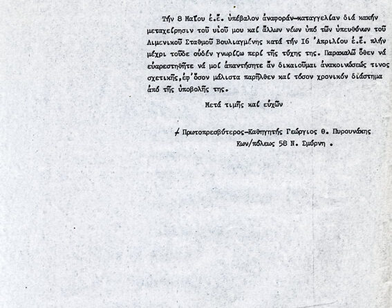 Πληροφορίες ΚατηγορίαΠοικίλα έγγραφαΌνομα φακέλου που ανήκει:1960-1969 ΠΟΙΚΙΛΑ ΕΓΓΡΑΦΑ 1967Α/Α εγγράφου:2Υπογράφειπ. Γεώργιος  ΠυρουνάκηςΠαραλήπτης:Πατριάρχης ΑθηναγόραςΗμερομηνία:17/4/67Θέμα...