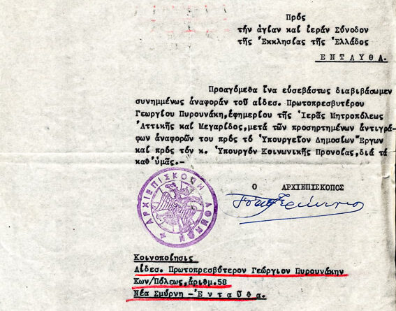 Ιερά Σύνοδος & κοιν. σε π. Γεώργιο  Πυρουνάκη