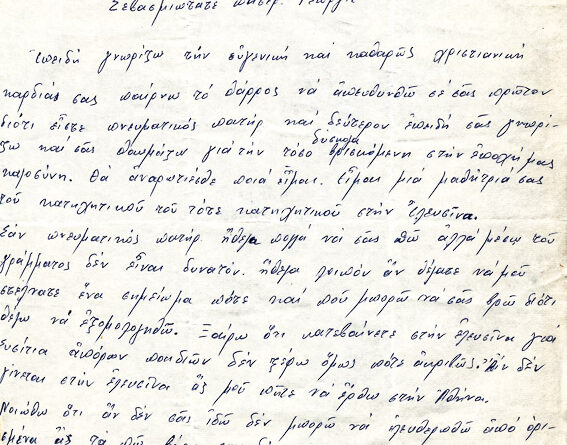 Επιστολή με την οποίαν ζητά συνάντησιν και εξομολόγησιν