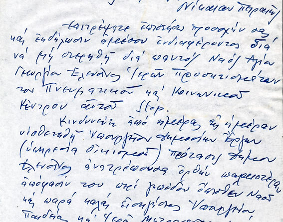 Επιστολή δια προσκτίσματα Ιερού Ναού Αγ. Γεωργίου