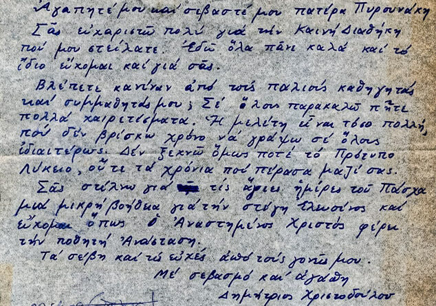 Πληροφορίες ΚατηγορίαΠοικίλα έγγραφαΌνομα φακέλου που ανήκει:1960-1969 ΠΟΙΚΙΛΑ ΕΓΓΡΑΦΑ 1969Α/Α εγγράφου:2ΥπογράφειΓιώργος ΑνωμερίτηςΠαραλήπτης:π. Γεώργιος  ΠυρουνάκηςΗμερομηνία:Χριστούγεννα...