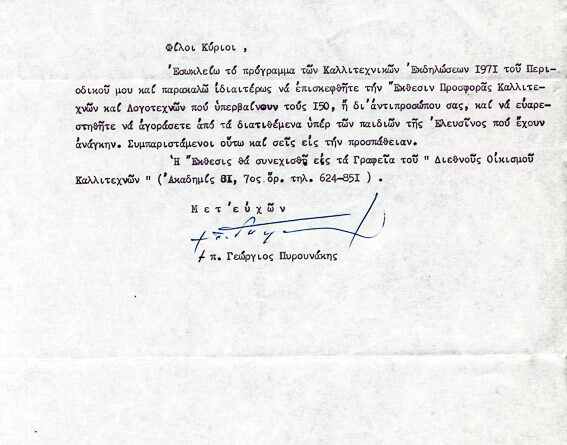 Πληροφορίες ΚατηγορίαΠοικίλα έγγραφαΌνομα φακέλου που ανήκει:1970-1979 ΠΟΙΚΙΛΑ ΕΓΓΡΑΦΑ 1971Α/Α εγγράφου:1ΥπογράφειΤάκης ΠερατικόςΠαραλήπτης:π. Γεώργιος  ΠυρουνάκηςΗμερομηνία:20/12/71Θέμα...