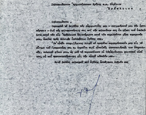 Ευχαριστίες για υποδοχή του στην Κρήτη, σύσταση προσώπου