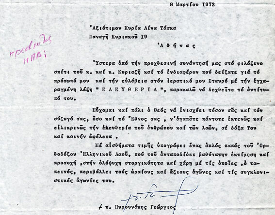 Πληροφορίες ΚατηγορίαΠοικίλα έγγραφαΌνομα φακέλου που ανήκει:1970-1979 ΠΟΙΚΙΛΑ ΕΓΓΡΑΦΑ 1972Α/Α εγγράφου:2ΥπογράφειΡ. ΤριανταφυλλίδηςΠαραλήπτης:π. Γεώργιος  ΠυρουνάκηςΗμερομηνία:-Θέμα...