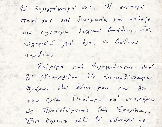 Ευχαριστίες για συμπαράσταση στη δοκιμασία του
