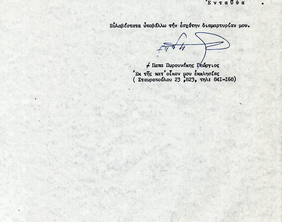 Πληροφορίες ΚατηγορίαΠοικίλα έγγραφαΌνομα φακέλου που ανήκει:1970-1979 ΠΟΙΚΙΛΑ ΕΓΓΡΑΦΑ 1973Α/Α εγγράφου:1Υπογράφειπ. Γεώργιος  ΠυρουνάκηςΠαραλήπτης:Μητροπολίτης ΚαλαβρύτωνΗμερομηνία:-Θέμα...