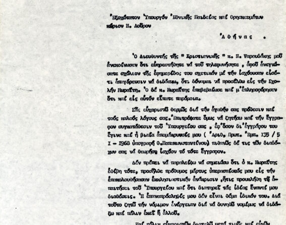 Πληροφορίες Κατηγορία:Ποικίλα έγγραφαΌνομα φακέλου που ανήκει:1970-1979 ΠΟΙΚΙΛΑ ΕΓΓΡΑΦΑ 1974Α/Α εγγράφου:1Υπογράφει:Τάκης ΠερατικόςΠαραλήπτης:π. Γεώργιος  ΠυρουνάκηςΗμερομηνία:16/12/74Θέμα...