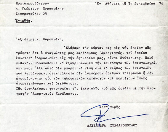 Πληροφορίες Κατηγορία:Ποικίλα έγγραφαΌνομα φακέλου που ανήκει:1970-1979 ΠΟΙΚΙΛΑ ΕΓΓΡΑΦΑ 1974Α/Α εγγράφου:1Υπογράφει:Τάκης ΠερατικόςΠαραλήπτης:π. Γεώργιος  ΠυρουνάκηςΗμερομηνία:16/12/74Θέμα...