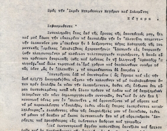 Πληροφορίες Κατηγορία:Ποικίλα έγγραφαΌνομα φακέλου που ανήκει:1970-1979 ΠΟΙΚΙΛΑ ΕΓΓΡΑΦΑ 1975Α/Α εγγράφου:1Υπογράφει:π. Γεώργιος ΠυρουνάκηςΠαραλήπτης:Μητρόπολη Μεγάρων...