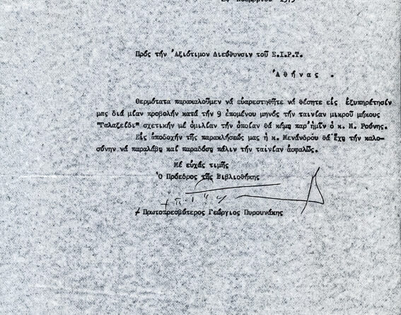 Να παραχωρηθεί ταινία δια ομιλία Μ. Ρούνη