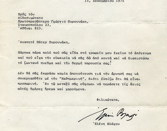 Γράμμα για τη συνεργασία του με την “Καθημερινή”