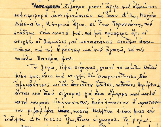 Γράμμα με ευχαριστίες και προσωπικά θέματα