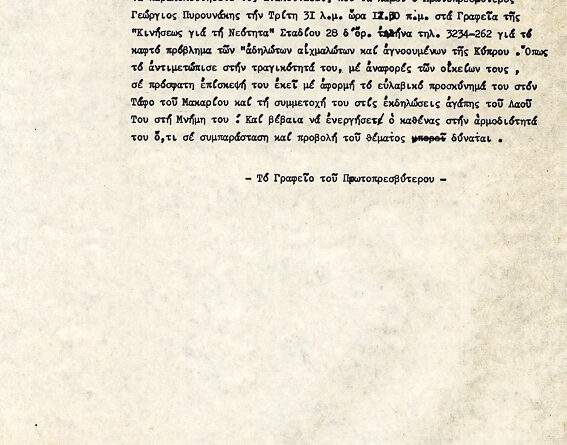 Ανακοινώσεις π. Γ. Π. για τους αγνοούμενους της Κύπρου