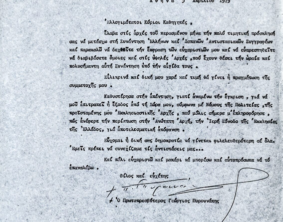 Πληροφορίες Κατηγορία:Ποικίλα έγγραφαΌνομα φακέλου που ανήκει:1970-1979 ΠΟΙΚΙΛΑ ΕΓΓΡΑΦΑ 1979βΑ/Α εγγράφου:1Υπογράφει:π. Γεώργιος ΠυρουνάκηςΠαραλήπτης:ΑνακοίνωσηΗμερομηνία:-/5/79Θέμα -...