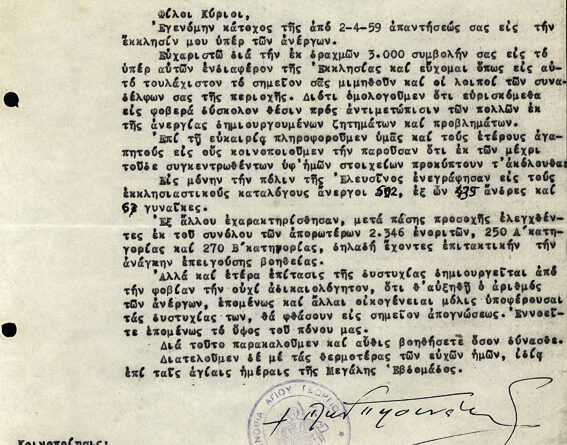 Πληροφορίες ΚατηγορίαΠοικίλα έγγραφαΌνομα φακέλου που ανήκει:1950-1959 ΠΟΙΚΙΛΑ ΕΓΓΡΑΦΑΑ/Α εγγράφου:2ΥπογράφειΓ. ΠυρουνάκηςΠαραλήπτης:Αρχιεπίσκοπος Αθηνών κ. Σπυρίδων...