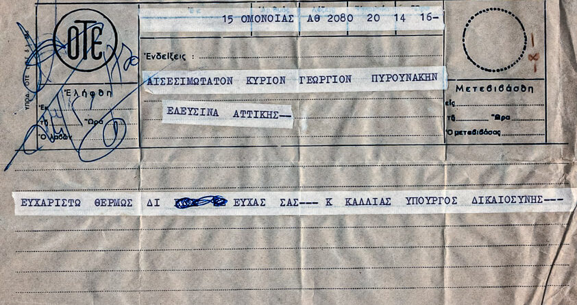 Πληροφορίες ΚατηγορίαΠοικίλα έγγραφαΌνομα φακέλου που ανήκει:1960-1969 ΔΙΑΦΟΡΑ 1961Α/Α εγγράφου:2ΥπογράφειΓιώργης από ΒόννηΠαραλήπτης:π. ΠυρουνάκηςΗμερομηνία:4/1/61Θέμα -...
