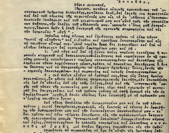 Επιστολή με θέμα της παρουσιάσεώς του εις το Δ’ Πανσπουδαστικόν Συνέδριο