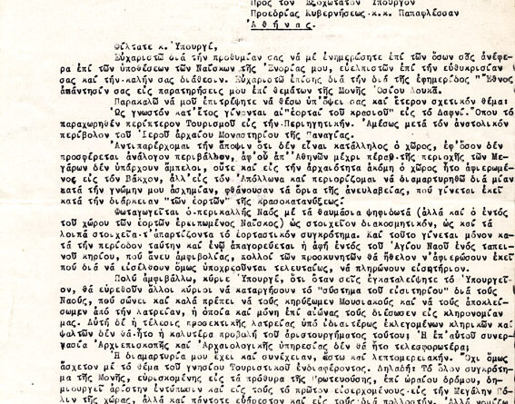 Επιστολή με θέμα διάφορα προβλήματα των μουσειακών ναών