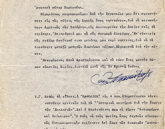 Πληροφορίες ΚατηγορίαΠοικίλα έγγραφαΌνομα φακέλου που ανήκει:1960-1969 ΔΙΑΦΟΡΑ 1963Α/Α εγγράφου:2ΥπογράφειΜατθαίος ΜουντέςΠαραλήπτης:π. Γεώργιος  ΠυρουνάκηςΗμερομηνία:28/12/63Θέμα -...