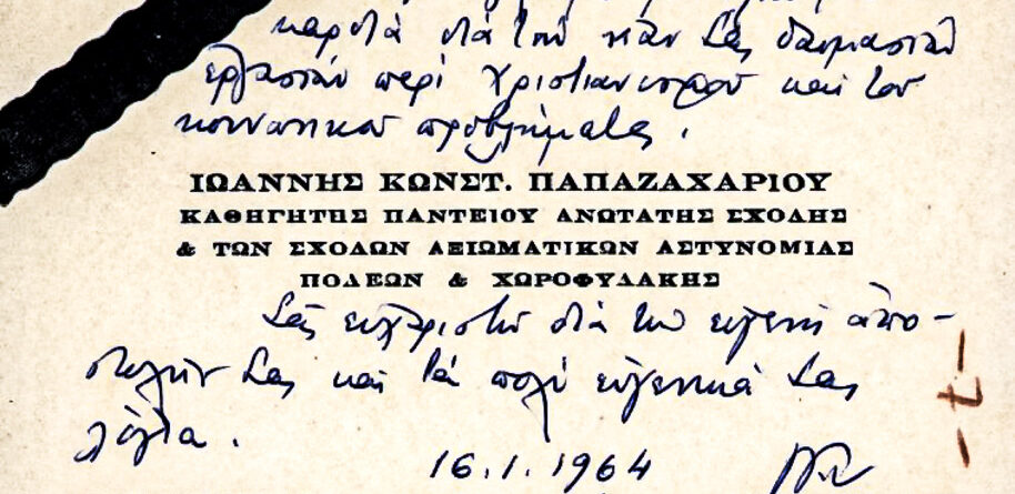 Επιστολή με ευχαριστίες και ευχές και θερμά λόγια για το βιβλίο ο “Χριστιανισμός και το κοινωνικό πρόβλημα”