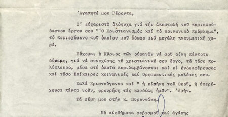Πληροφορίες ΚατηγορίαΠοικίλα έγγραφαΌνομα φακέλου που ανήκει:1960-1969 ΔΙΑΦΟΡΑ 1963Α/Α εγγράφου:2ΥπογράφειΜατθαίος ΜουντέςΠαραλήπτης:π. Γεώργιος  ΠυρουνάκηςΗμερομηνία:28/12/63Θέμα -...