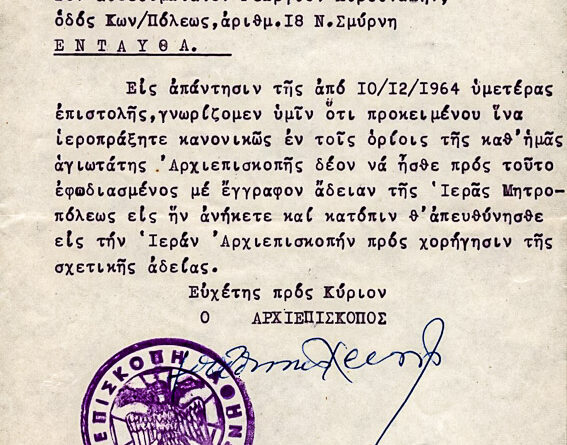Έγγραφον δια την άδειαν ιερουργίας