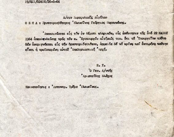 Πληροφορίες ΚατηγορίαΠοικίλα έγγραφαΌνομα φακέλου που ανήκει:1960-1969 ΔΙΑΦΟΡΑ 1964βΑ/Α εγγράφου:1ΥπογράφειΥπουργείον ΕσωτερικώνΠαραλήπτης:Χωροφυλακή ΑιγάλεωΗμερομηνία:26/6/64Θέμα - Περιεχόμενο:αίτηση...