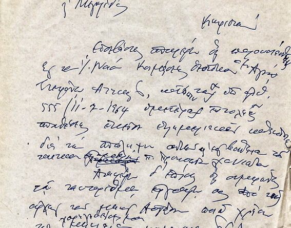 Πληροφορίες ΚατηγορίαΠοικίλα έγγραφαΌνομα φακέλου που ανήκει:1960-1969 ΔΙΑΦΟΡΑ 1964βΑ/Α εγγράφου:2ΥπογράφειΕπιστολήαπό ποιόν;Παραλήπτης:π. Γεώργιος  ΠυρουνάκηςΗμερομηνία:-Θέμα -...