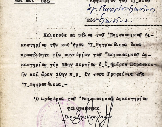 Πρόσκληση σε συνεδρία του Επισκοπικού Δικαστηρίου