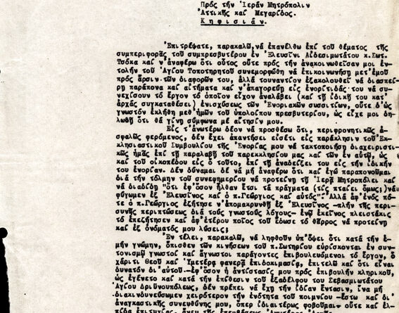 Επιστολή διαμαρτυρίας δια την απομάκρυνσιν π. Πυρουνάκη